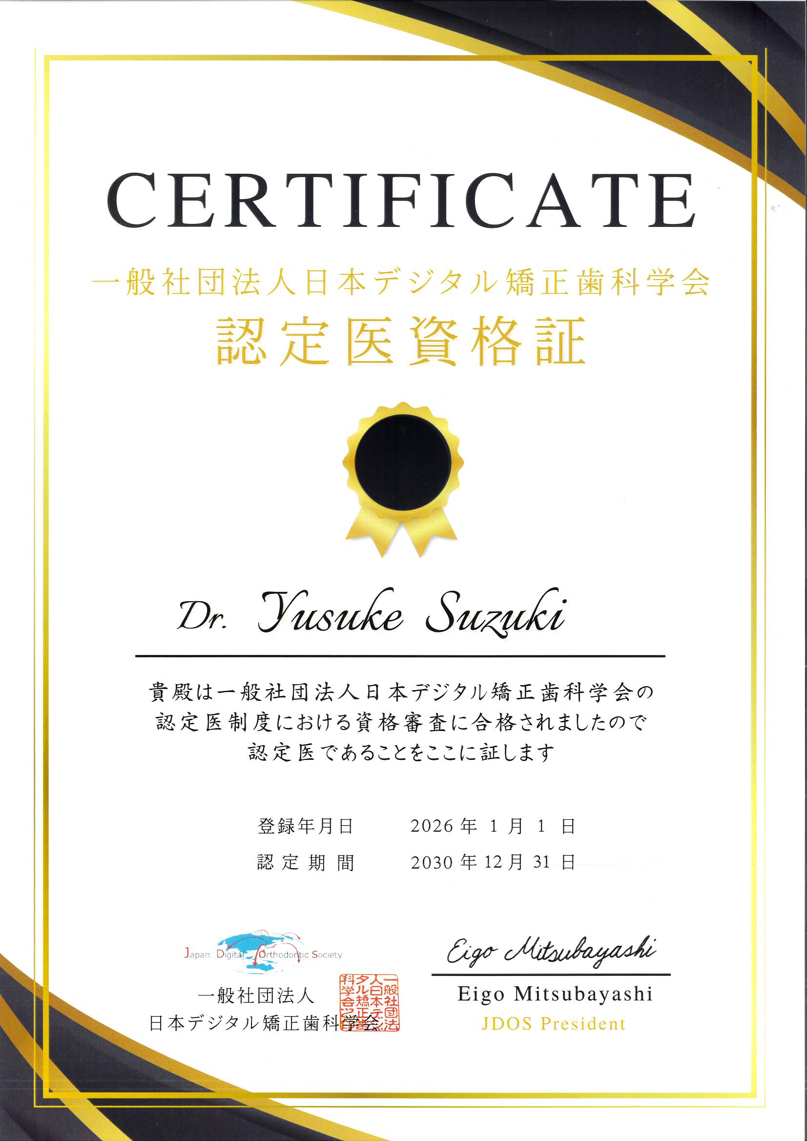 - 日本デジタル矯正歯科学会認定医